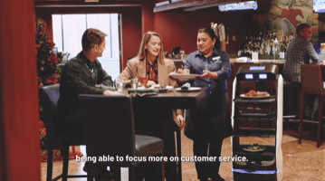 有了擎朗机器人的助力,店员Maria Baires女士就可以完全放心地将传递菜品和搬运盘子的工作都交给机器人来做,她则有更多时间为顾客服务,介绍特色餐品,及时响应顾客需求。