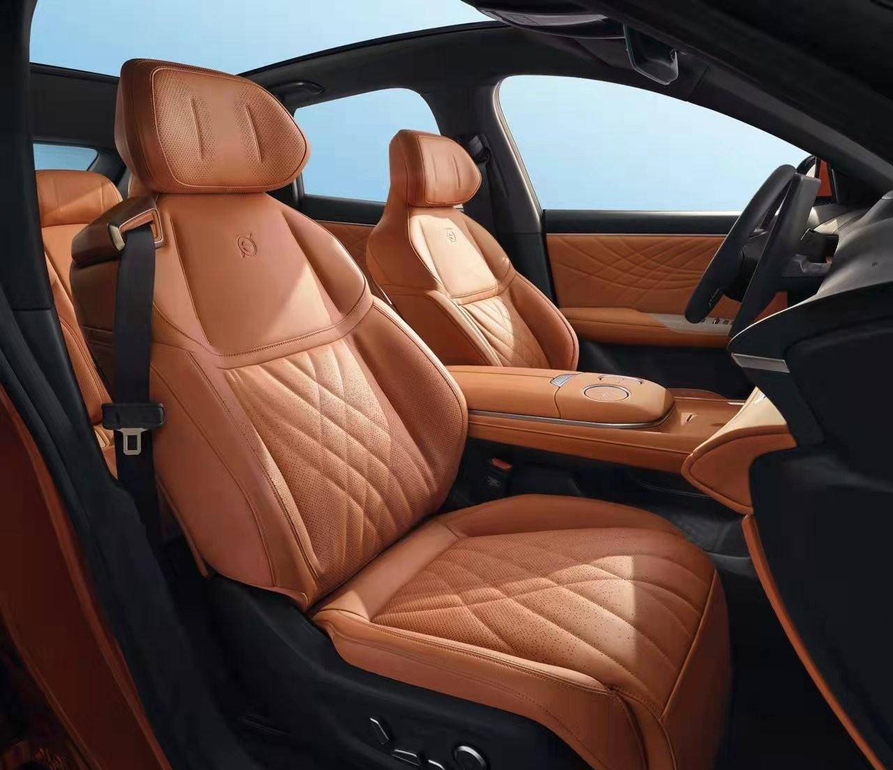 座椅看上去很厚重,采用菱形线条设计,副驾驶提供多项电动调节,而且带有电动腿托,类似“女王副驾”。